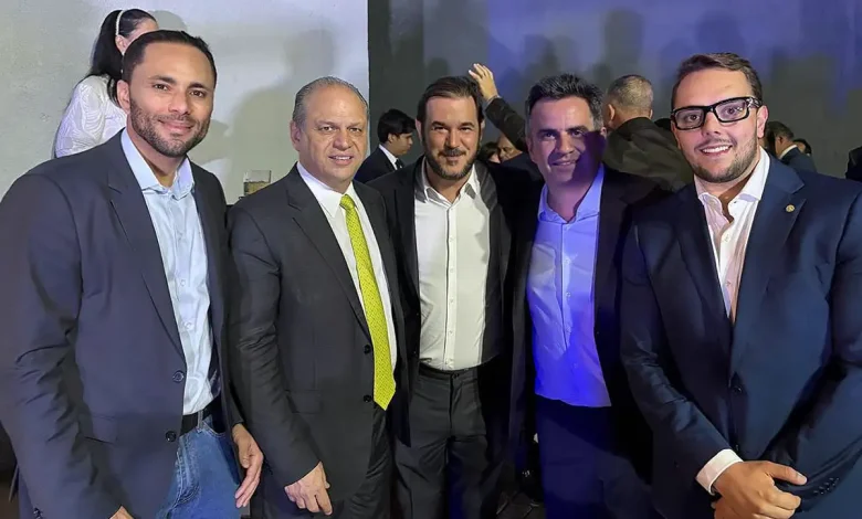Na inauguração da nova sede do PP em Brasília, nesta quarta-feira, 11, em Brasília (DF), mostra a foto, apareceram os deputados Do Carmo (licenciado, do União, secretário estadual), Ricardo Barros (PP) e Felipe Franciscini (União), os presidentes do União Brasil e do PP, Antonio Rueda e Ciro Nogueira.
