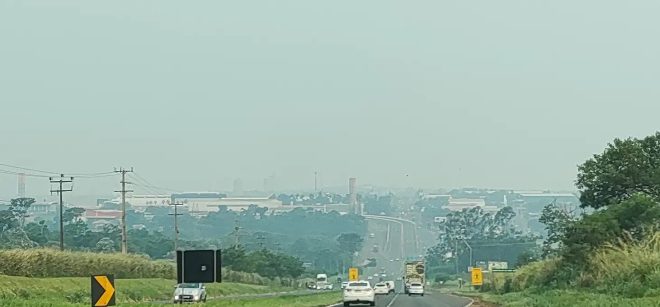 Maringá e região aparentam estar com névoa na quente tarde deste sábado. Trata-se da fumaça dos incêndios no Pantanal (MS), que piora a qualidade do ar em vários municípios. O Simepar previa tempo nublado com pancadas de chuva, mas até agora não há registro na microrregião e a temperatura chega a 37° C.
